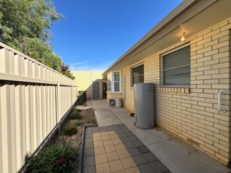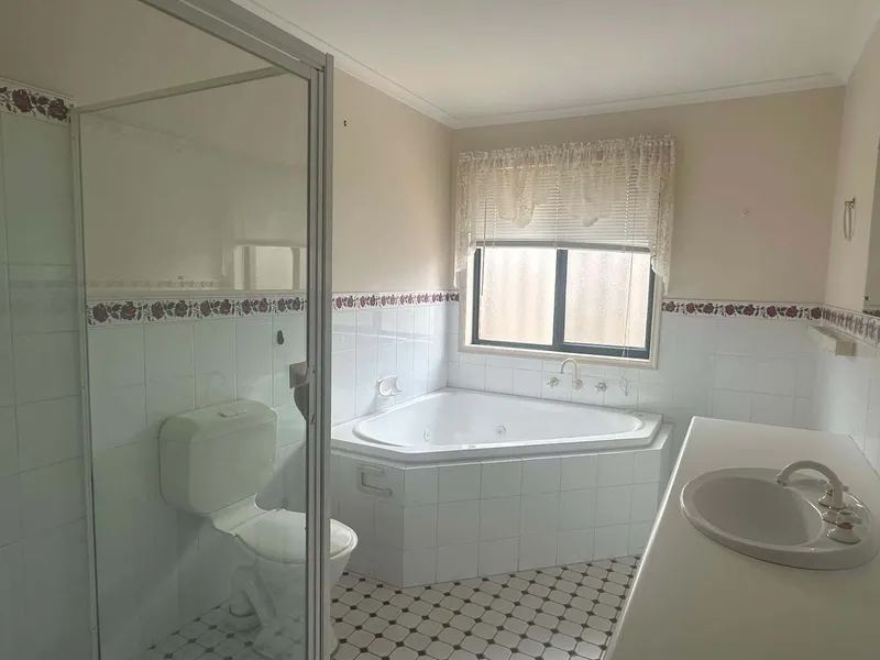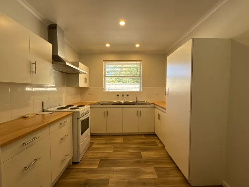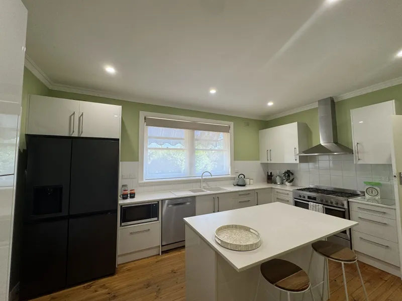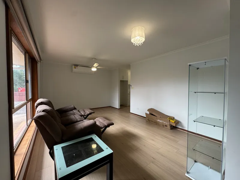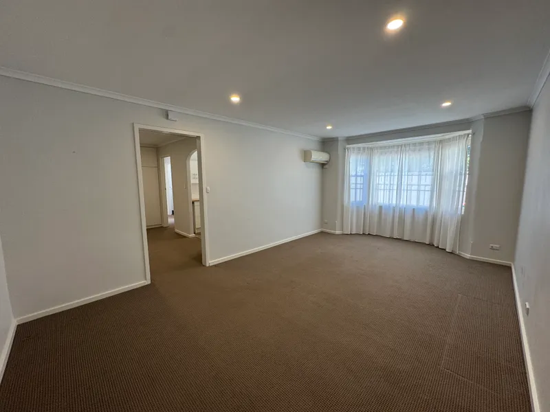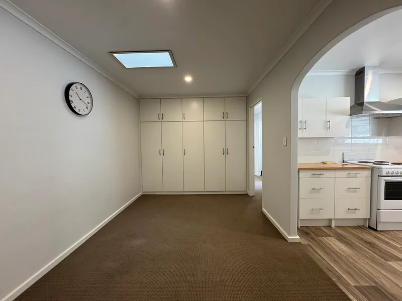Inside, the home has been thoughtfully refreshed, creating a light and welcoming feel throughout. The layout includes a main bedroom complete with a walk-in robe, a second bedroom with a built-in robe, an updated central bathroom, and a functional living space with separate living and dining, suited to everyday living.