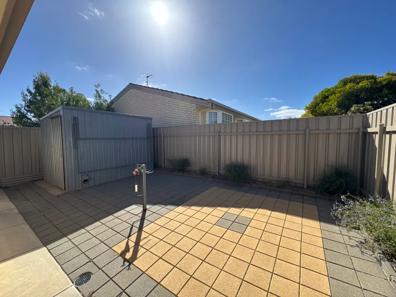 Externally, the property features a detached garage with an automatic remote, along with a private courtyard that provides a quiet space to relax or entertain. The gardens are neat and fully irrigated, adding to the overall appeal of the home.