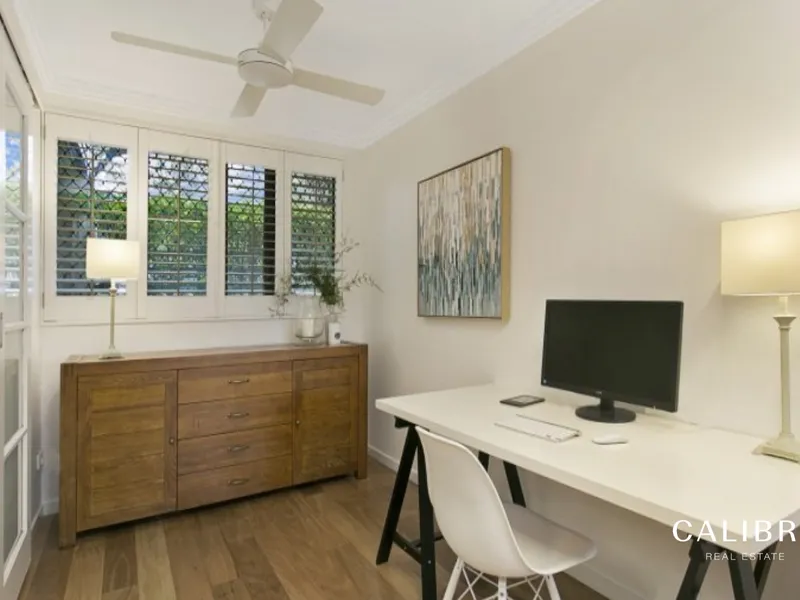 - The second double bedroom with built-ins, ceiling fans, air conditioning and plantation shutters is also on the upper level and is serviced by a fully tiled main bathroom.