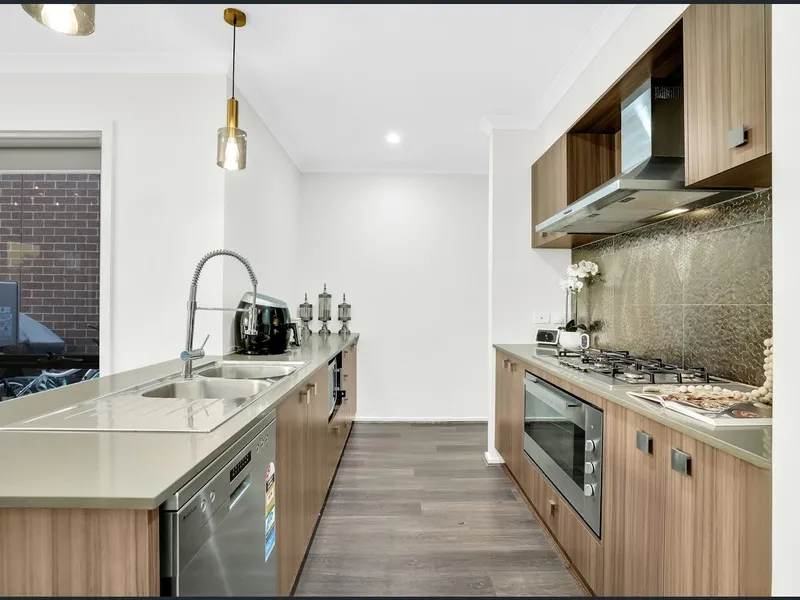 Featuring a spacious 4-bedroom layout, the master suite includes a walk-in robe and a luxurious en-suite with a double vanity. At the heart of the home, a stylish kitchen with a 900mm gas cooktop, oven, dishwasher, and butler's pantry flows seamlessly into two generous living areas, ideal for relaxing or entertaining.