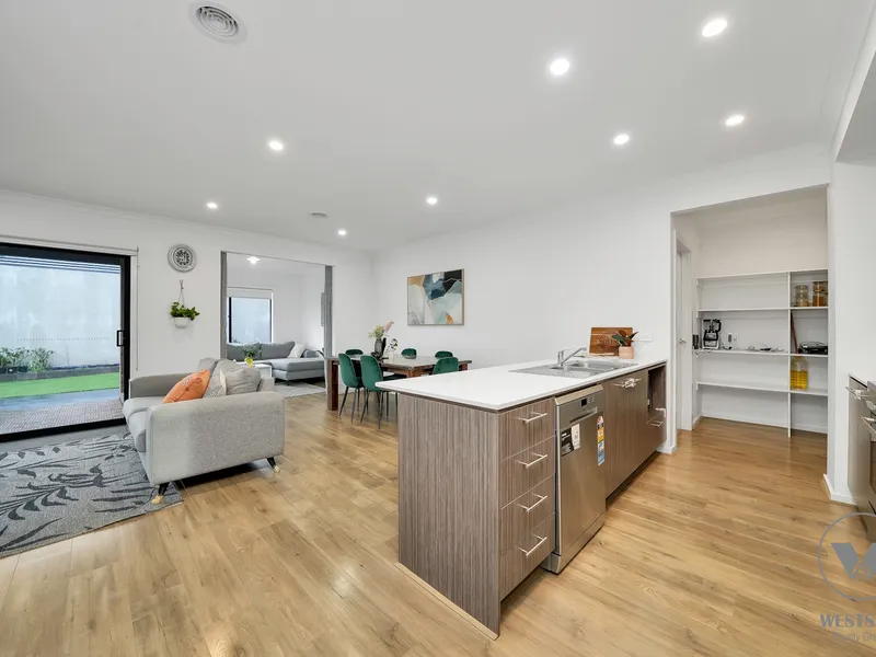 Westside Realty Group proudly presents this beautifully designed family home that perfectly combines timeless elegance with modern comfort. An impressive façade creates a welcoming first impression, leading into sophisticated interiors filled with warmth and natural light. The thoughtfully planned layout enhances space and flow, seamlessly connecting the living areas to create an open and inviting atmosphere.