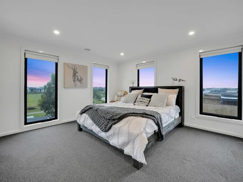 The master bedroom offers a private sanctuary, complete with a luxurious ensuite and lovely outlook. At the heart of the home is a stylish and functional kitchen featuring premium appliances, a 900mm cooktop, and a sleek stone benchtop. Overlooking the open-plan living and dining zones, this central hub is ideal for both everyday living and entertaining, delivering the perfect blend of practicality and contemporary design.