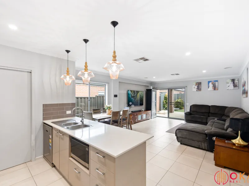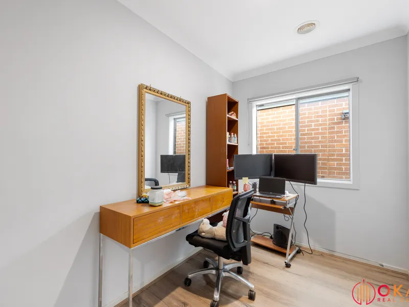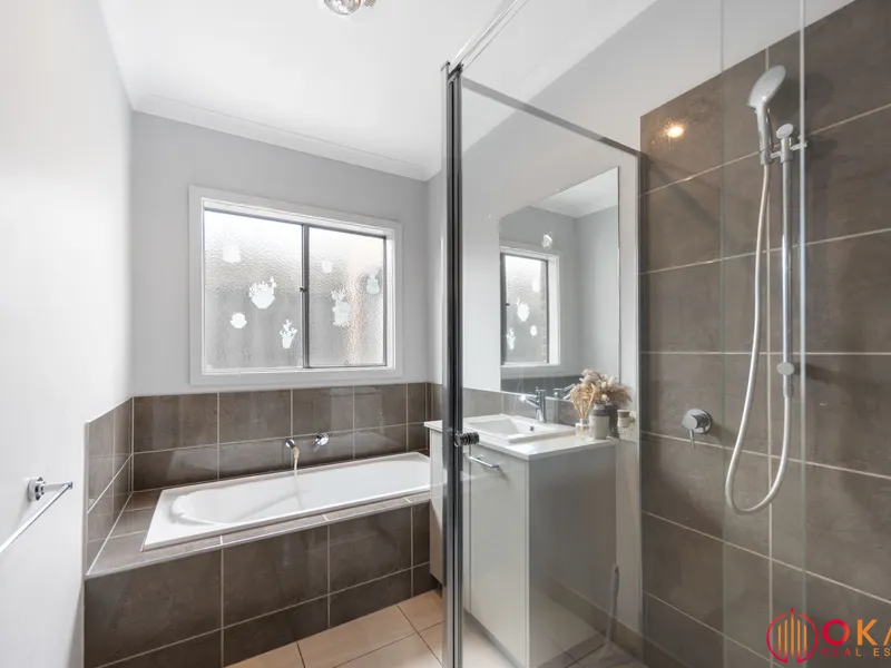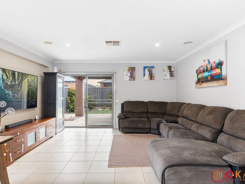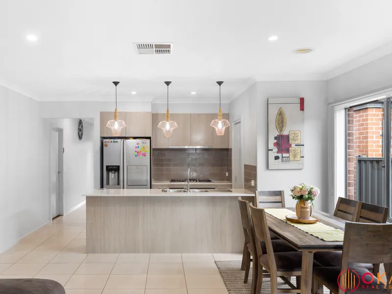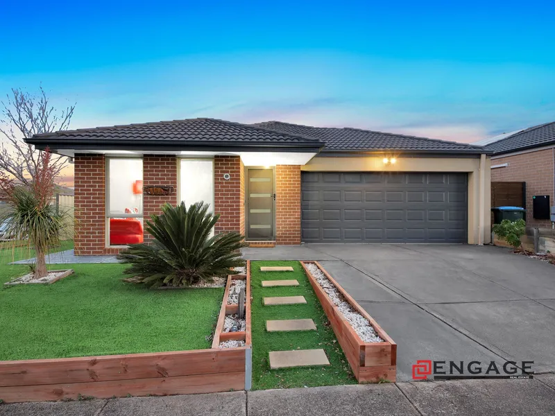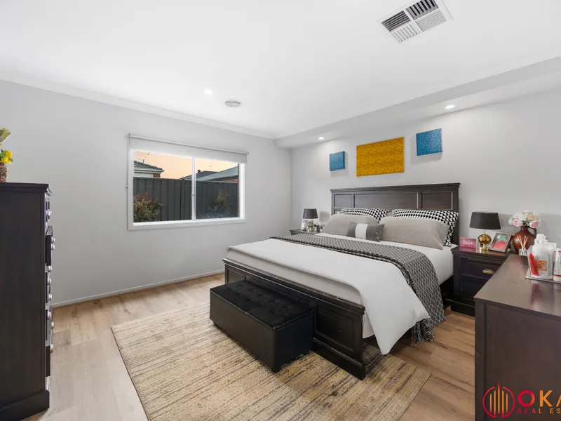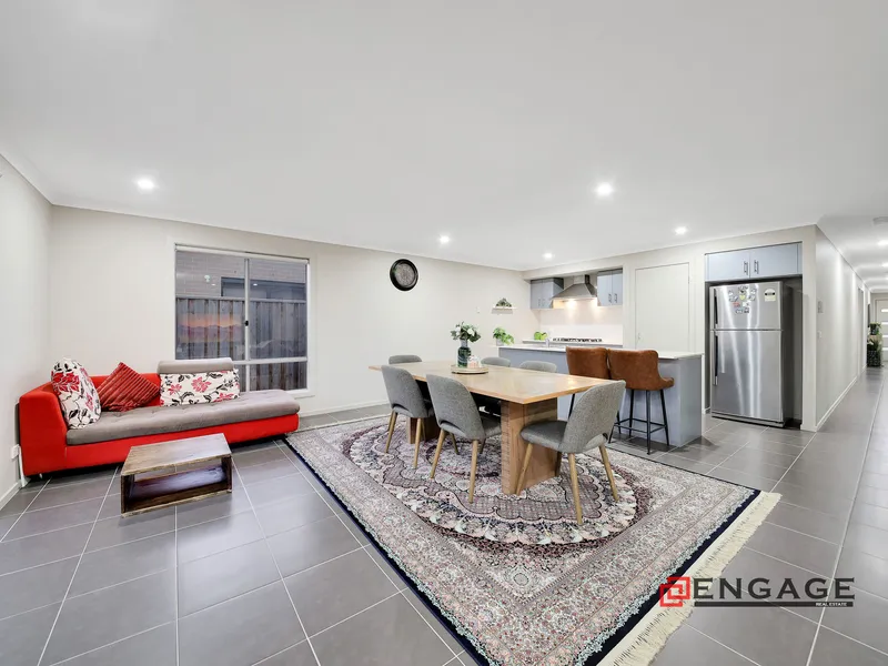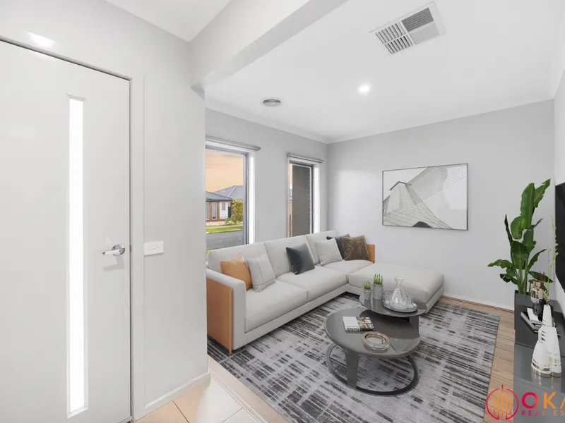Okas Real Estate proudly presents this stunning family home built in Tarneit. With immaculate front facade & minimal maintenance front garden to start with, then stepping through inside, you are wowed by the stunning tiled flooring running all through the entrance walkway, family, dining & kitchen area. This exquisite home comprises of generous sized bedrooms including Master with its ensuite & walk in robe, whilst the other bedrooms are fitted with built in robes and are serviced by central bathroom. The family minded floor plan provides flexibility as the living area or the study room adjacent to the front entrance can potentially be converted into a bedroom, depending upon your daily requirements.