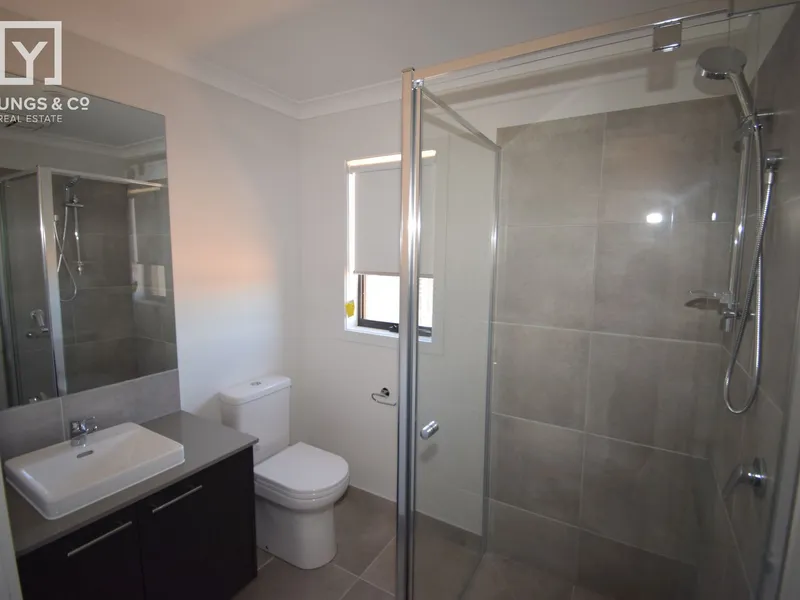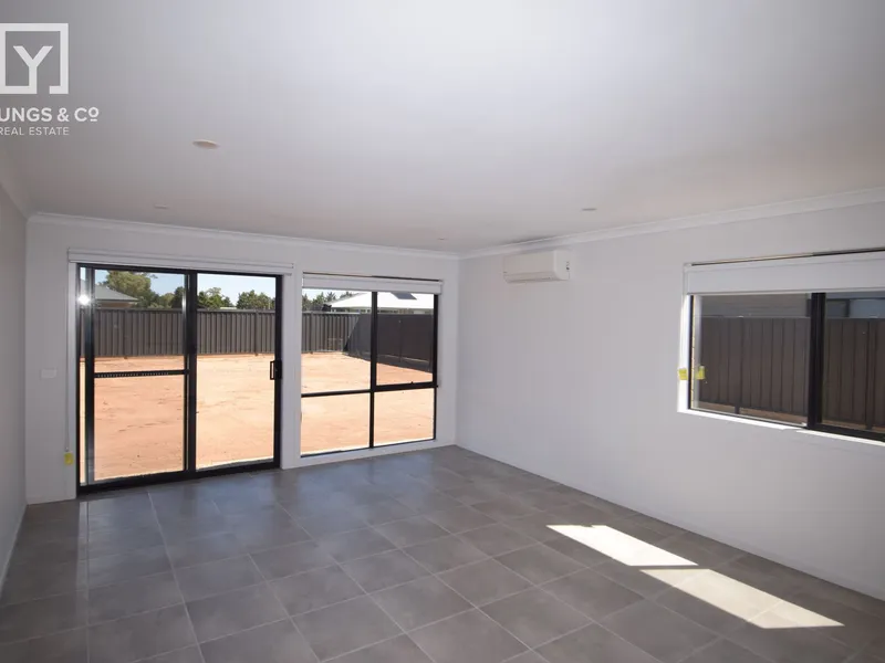 Located in a lovely new area of Tatura, this modern four bedroom home offers open plan living with split system heating and cooling, master bedroom with ensuite, electric heating in all bedrooms, kitchen with all modern appliances and walk in pantry. Double garage with access into the home. Low maintenance lawns and surrounds.