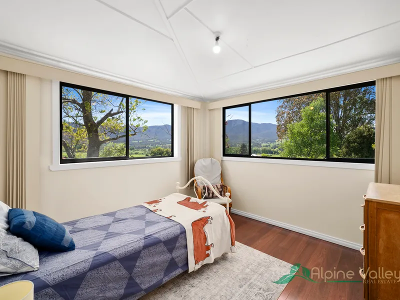 Step outside onto the front deck and soak in the breathtaking views over rolling farmland and the stunning Kiewa Valley ranges – the perfect spot to enjoy your morning coffee or unwind with a glass of wine.