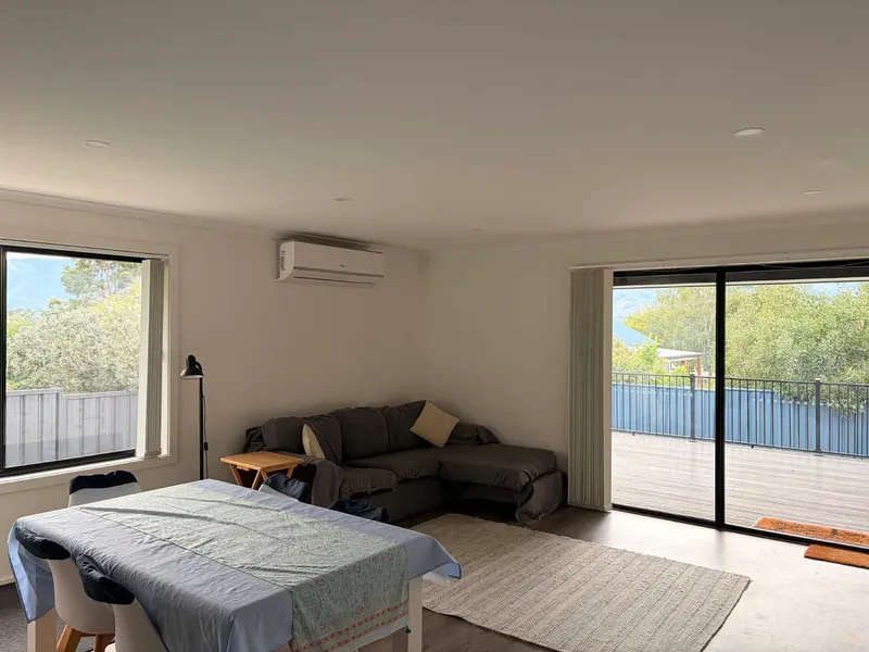 ? Light-filled open-plan kitchen, dining, and living area with reverse cycle heating and cooling for year-round comfort