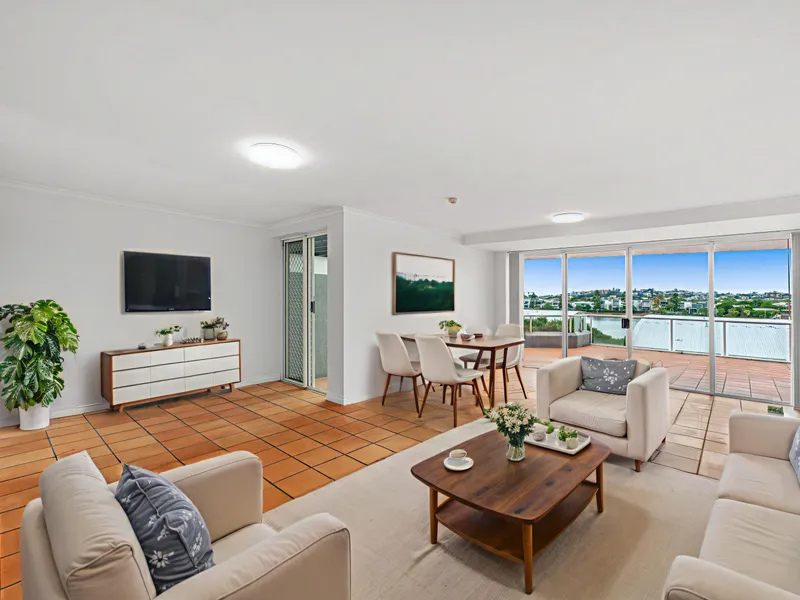 The aspect can’t be beaten, the unit looks directly east over the Brisbane River.