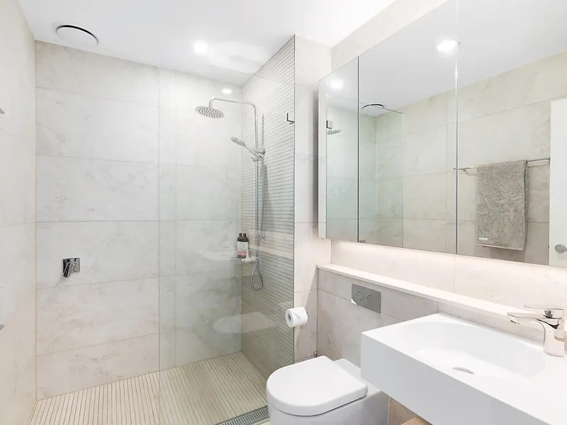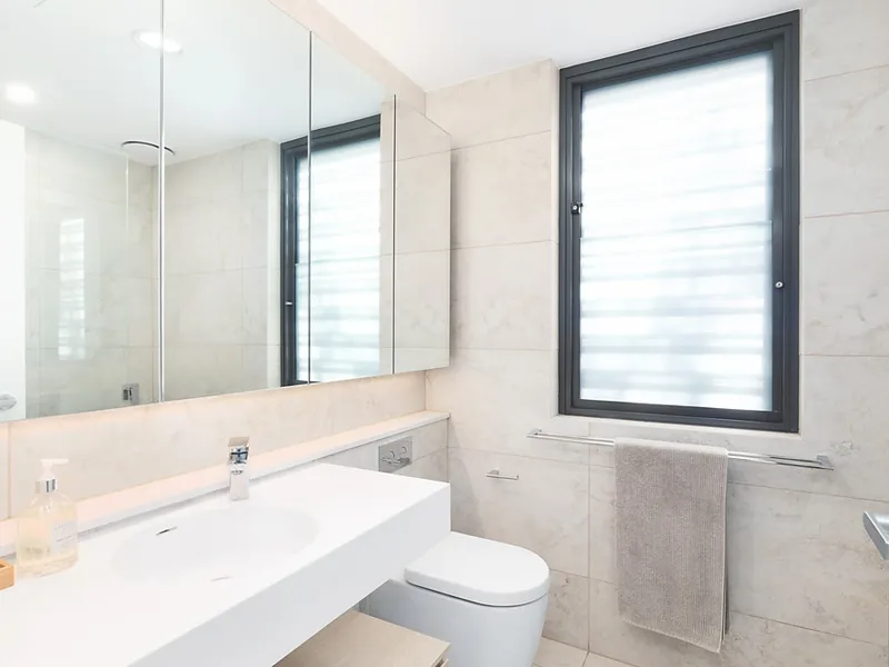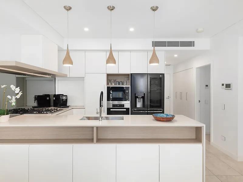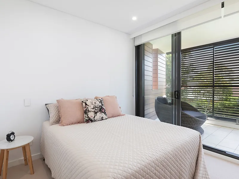 At the heart of the home is a sleek gourmet kitchen, appointed with stone benchtops and premium Miele gas appliances, perfect for both everyday living and entertaining. Two spacious bedrooms feature built-in wardrobes, with the master enjoying a private ensuite and direct balcony access.