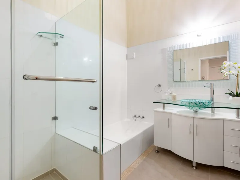 • A large covered deck at the front and a covered courtyard at the rear of the home provides additional outdoor entertaining within close proximity to the pool. The courtyard's motorised louvered ceiling allows you to take advantage of all weather conditions.