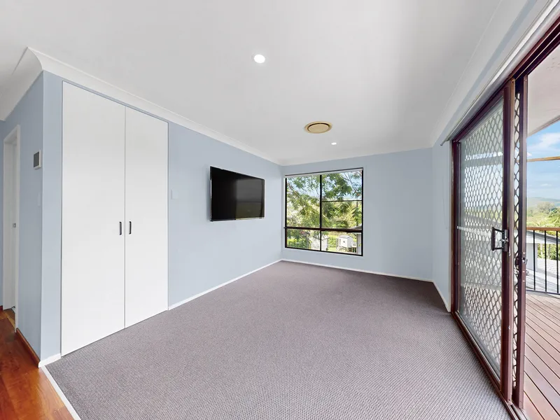 • Upstairs second living area with access to the elevated balcony offering leafy views