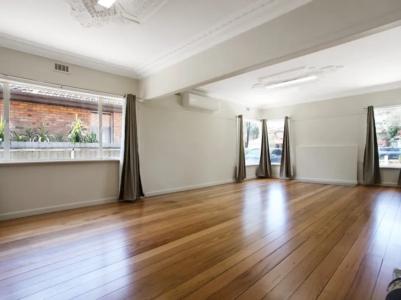 Perfectly situated in prime location, this ground floor unit offers unmatched convenience being just steps away from Thornbury train station, high street trams, Thornbury Primary school, and an array of charming cafes. Consisting of two generously sized bedrooms, one with built-in robes, the property features an inviting open-plan lounge and dining area, a central bathroom with laundry taps & a separate toilet. Recently enhanced with brand new carpet, the unit is equipped with modern amenities such as a split system for heating and cooling, a dishwasher, and one off-street parking space. With its impressive size and enviable location, this property stands out as an exceptional home.