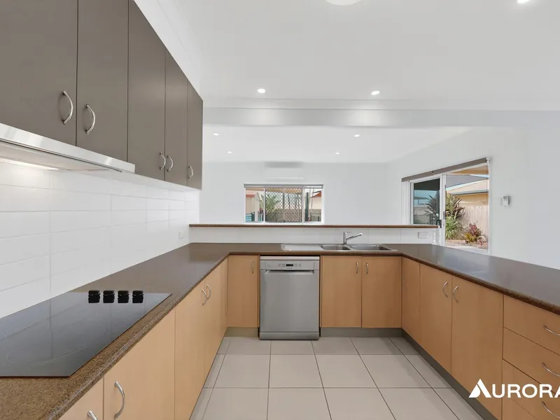 *Large open-plan kitchen with modern appliances and plenty of bench space