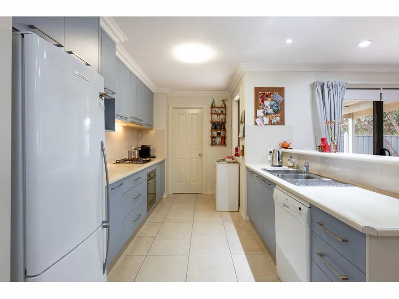 The home boasts an open-plan kitchen and dining area, complemented by modern appliances including gas cook top, electric oven and dishwasher making everyday living and entertaining a breeze. A fabulous walk-in utility cupboard provides excellent storage, adding to the home’s practical design.
