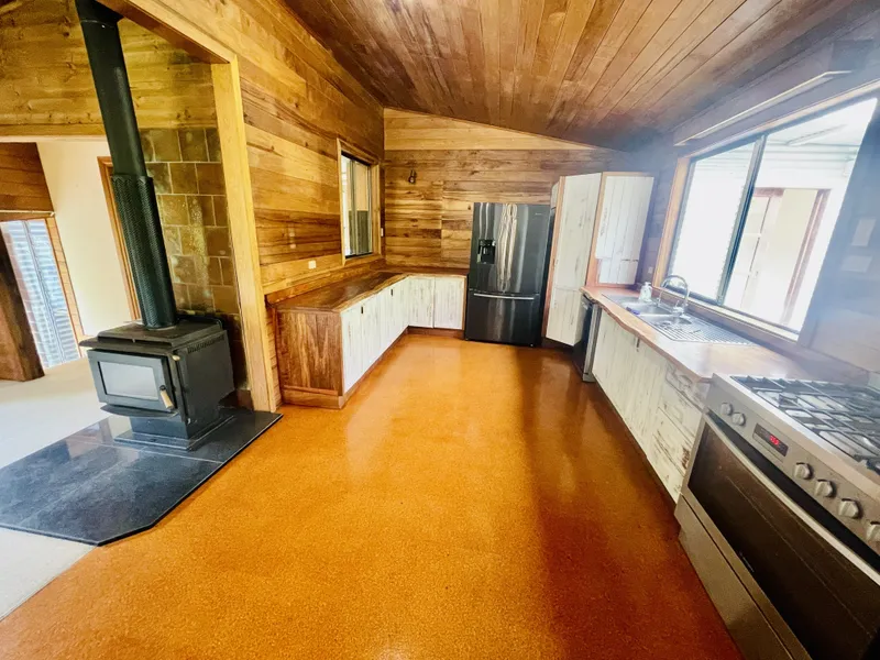 Enjoy the charm of rural living in this spacious four-bedroom, one-bathroom home set high and out of flood, capturing beautiful elevated views. Offering comfort and character, the home features a large open-plan living and dining area warmed by a cosy wood heater, complemented by a welcoming country-style kitchen at the heart of the home.