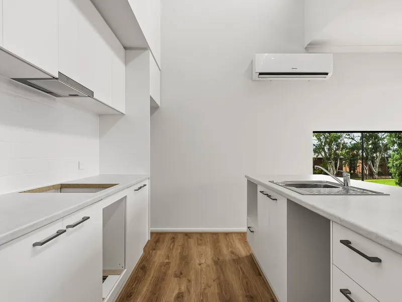 The light filled open plan kitchen and living area forms the heart of the home, perfect for relaxing or entertaining. The kitchen is well equipped with a dishwasher, making daily clean up a breeze.