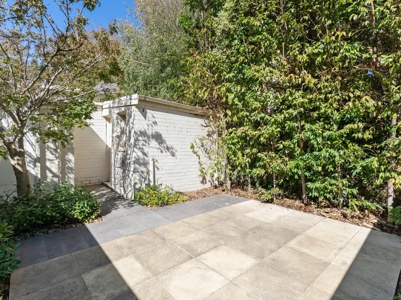 Includes heating/cooling, double remote garage, sunny courtyard and storage shed.