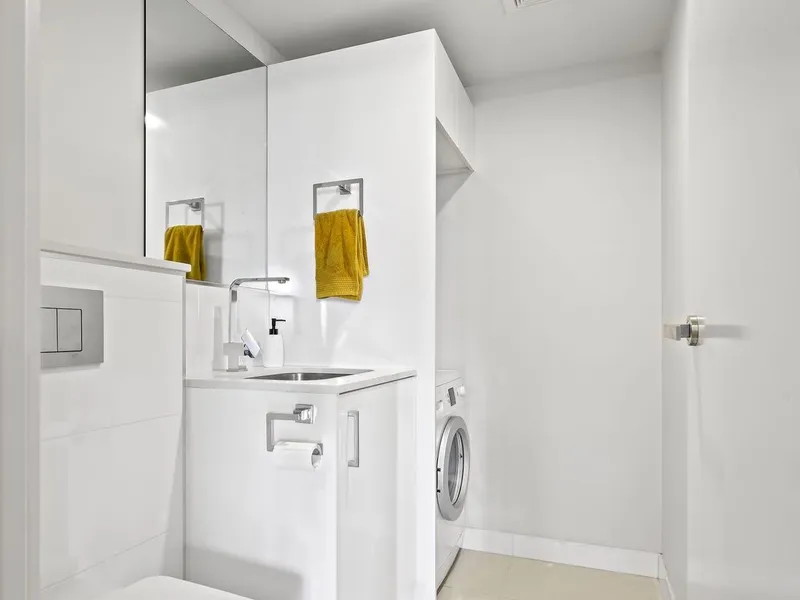 From the moment you step inside, the apartment welcomes you with light-filled open plan living, hybrid timber floors and a seamless indoor-outdoor flow. The huge balcony becomes an extension of your living space: a place to unwind with a morning coffee overlooking the river, entertain friends at sunset, or relax after a long day while Brisbane's skyline glows into the evening.