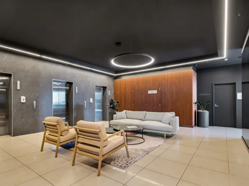 Residents of Centra enjoy exclusive access to a premium rooftop retreat featuring a swimming pool and breathtaking panoramic views across the Brisbane River, city skyline and surrounding ranges. This impressive communal space is perfect for entertaining guests or unwinding after a long day.