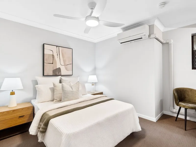 Positioned in a quiet, elevated pocket of Toowong, this well-appointed residence offers the space and privacy of a townhouse with the convenience of apartment living. Set within a boutique complex of just five, the home delivers generous proportions, excellent separation between bedrooms, and seamless indoor-outdoor living.