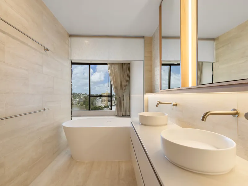 • Two bathrooms featuring premium porcelain benchtops, designer tapware, and luxury fixtures