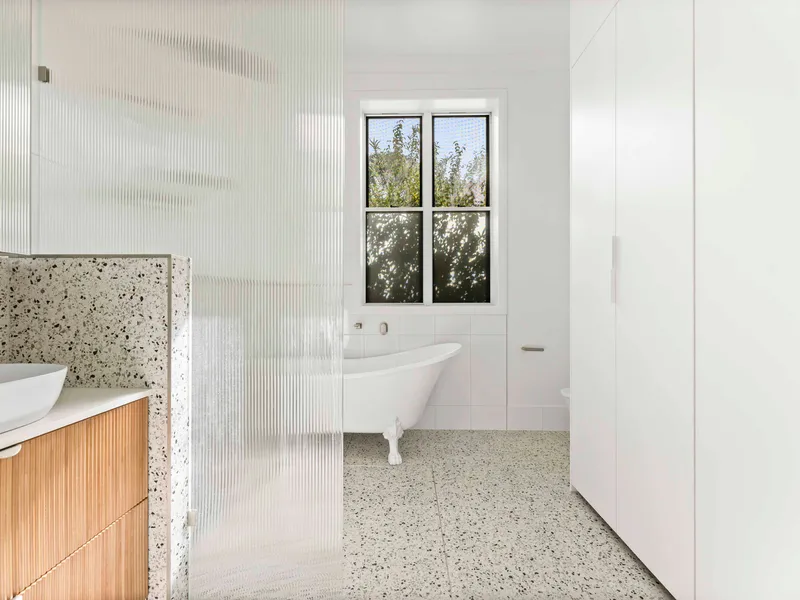 [:] The main bathroom is fully renovated with high-end fittings, a walk-in shower and claw foot bath.