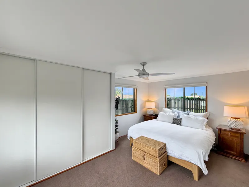 Also located upstairs, the third bedroom is spacious and features two built-in robes, providing excellent storage and a comfortable place for family members or guests.