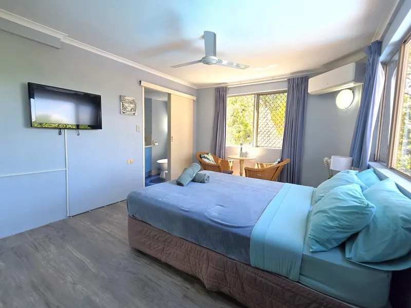 - 2 spacious bedrooms with built-ins and ceiling fans. Main bedroom with ensuite and air conditioning