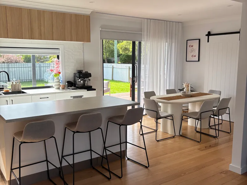 The modern kitchen is equipped with all the appliances you need and is designed with both practicality and style in mind. The island bench overlooks the lounge room, creating an open and connected living space that’s perfect for everyday living or entertaining. The kitchen also opens out to the dining area, which leads directly onto the back deck—an ideal place to relax or enjoy time with family and friends.