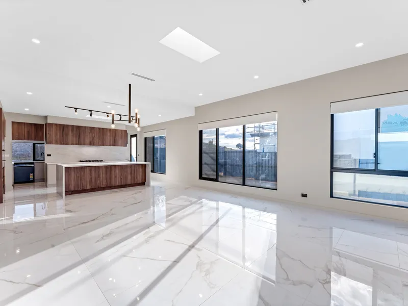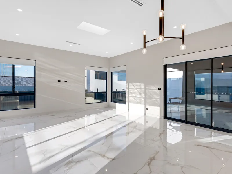 - Open-plan living and dining area with abundant natural light