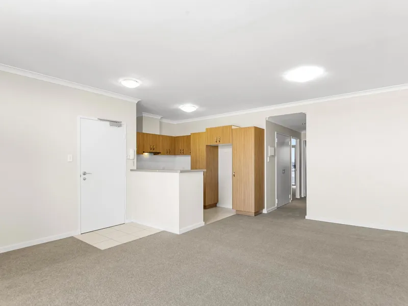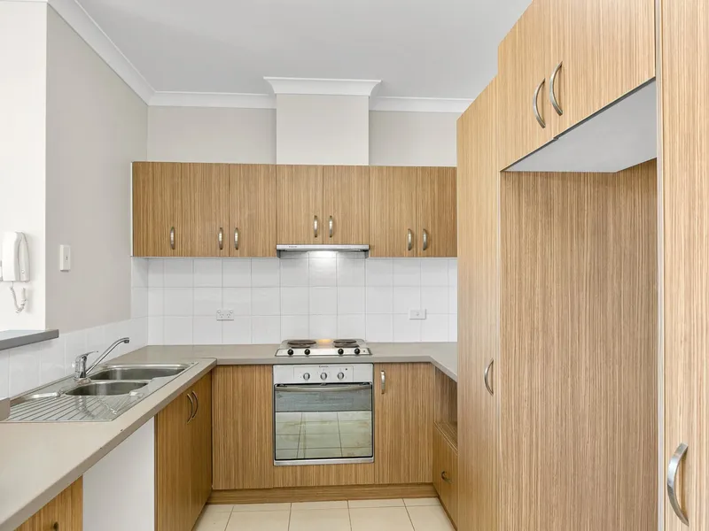 Open plan kitchen overlooking living/dining area
