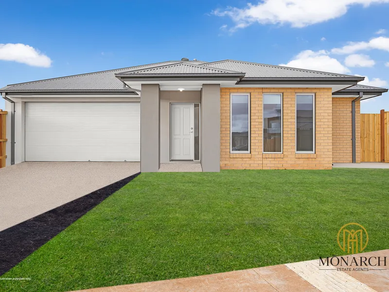 Monarch Estate Agents proudly presents 42 Roundtop Road, Truganina — A brand new home offering contemporary living with quality finishes, generous space, and low-maintenance design. Ideal for families or professionals seeking comfort and practicality in a growing, family-friendly neighbourhood.