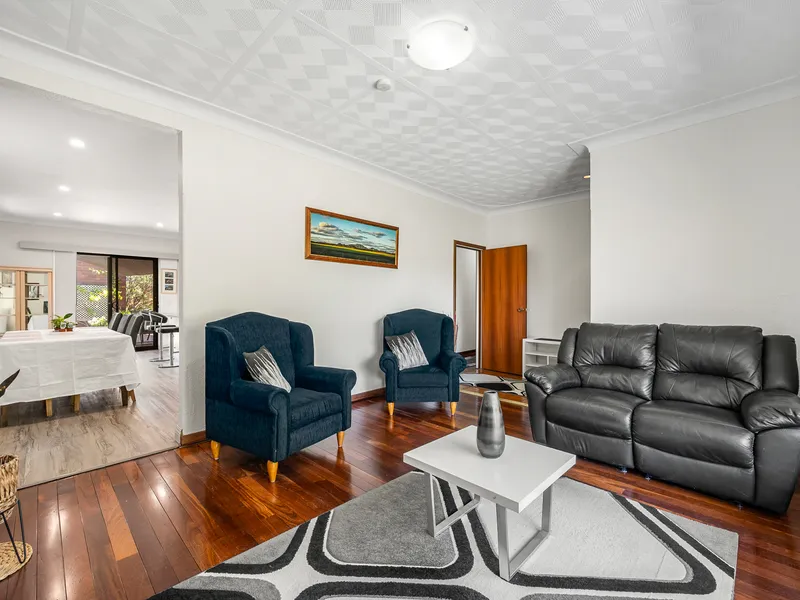 The kitchen and meals area features high ceilings, allowing plenty of natural light to flow through the home. The property also includes a separate lounge room and good-sized bedrooms with built-in robes, providing both space and functionality.