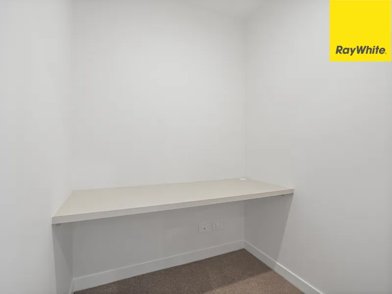 Generous in size, the sunlit bedroom provides an ideal place for rest and rejuvenation, fit with wall-to-wall mirrored wardrobes for ample storage and large windows. Meanwhile, off the main living hub of the home, the separate study provides a functional zone for work or as an additional storage space, cleverly concealed via a sliding door.