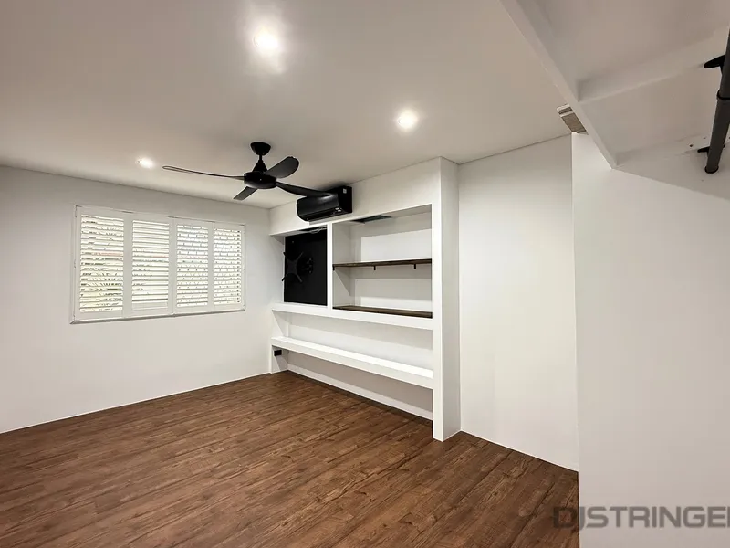 - Master bedroom with built in robe, ceiling fan, air con & dedicated TV space