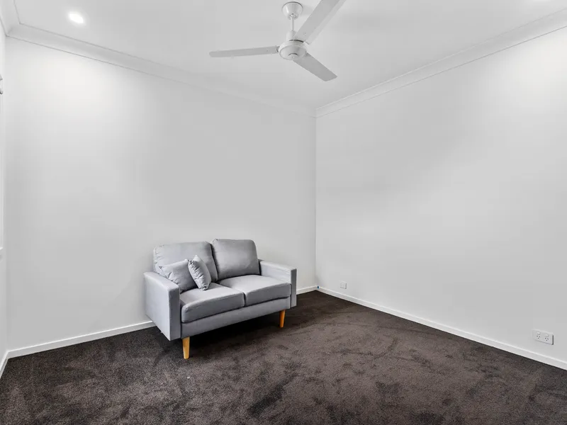• Relaxing Alfresco Area: Furnished outdoor space with a ceiling fan, perfect for enjoying the low-maintenance backyard