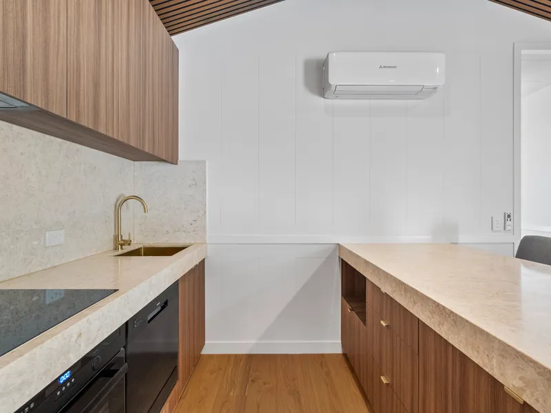 • Elegant natural stone benchtops & oak timber floors