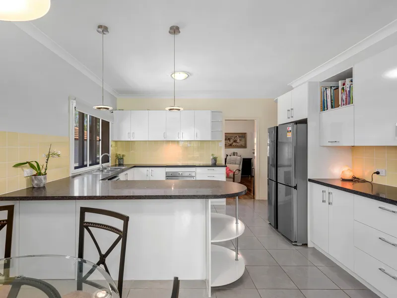 The kitchen is equipped with a dishwasher, ensuring meal preparation is a breeze. An internal laundry adds to the convenience, allowing for easy management of household chores.