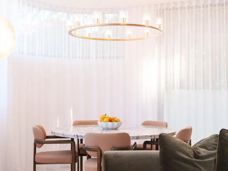 * Light-filled open-plan living and dining with curated artwork and luxe styling