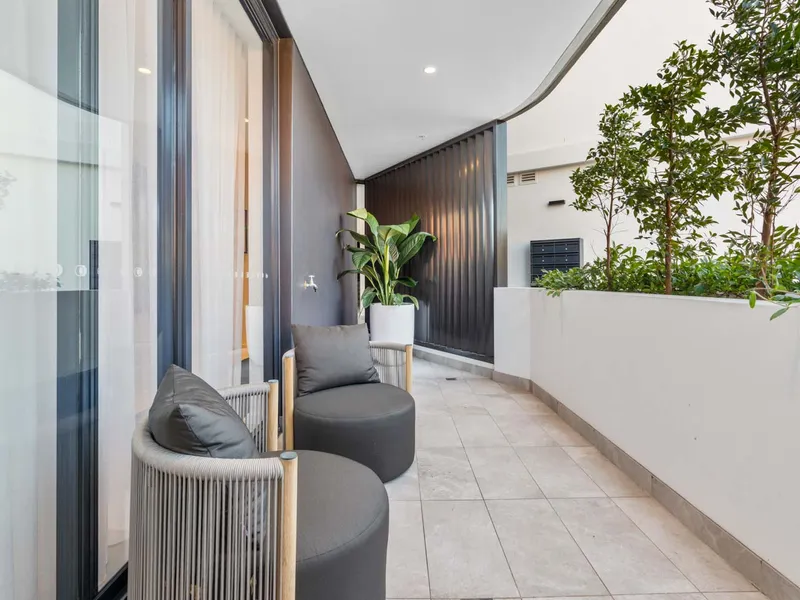 * Private balcony with stylish outdoor setting, rear enclosed paved courtyard