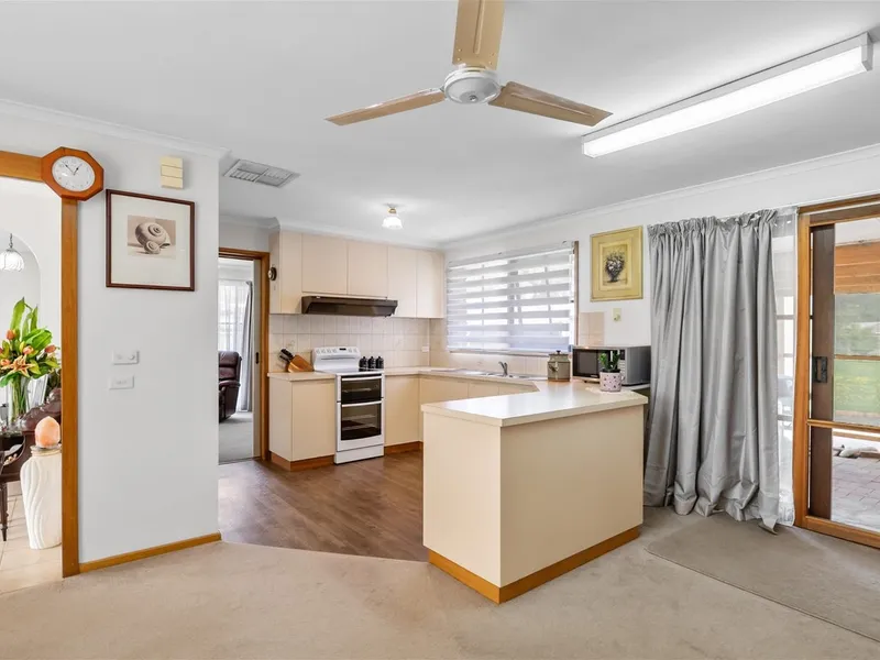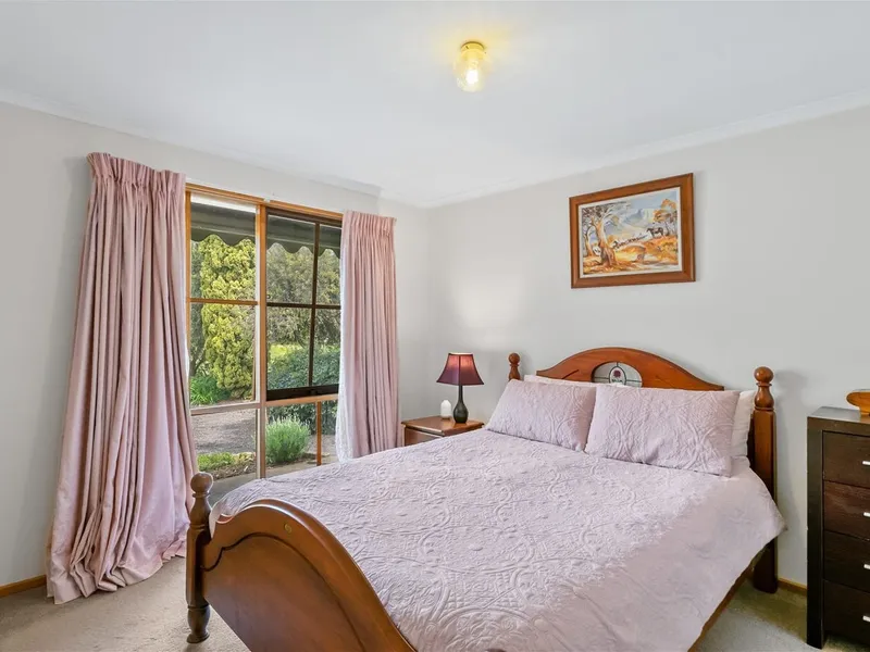 The modern kitchen is well appointed with electric appliances and offers a practical layout suited to everyday living. Comfort is ensured year-round with wood heating as well as split system heating and cooling.