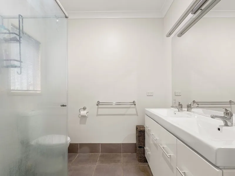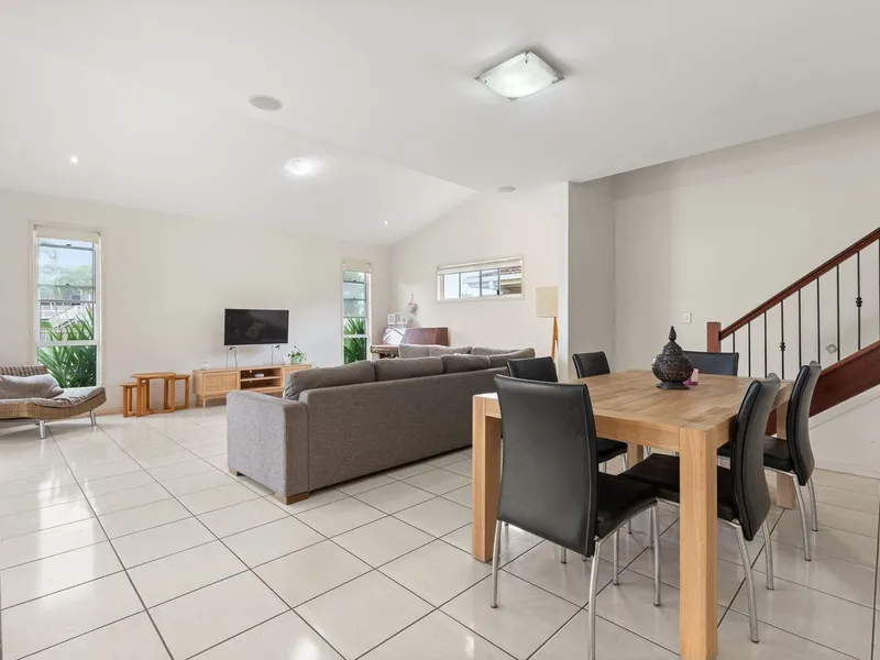 Designed with practical living in mind, the home features an open-plan layout downstairs flowing seamlessly to the covered alfresco and fully fenced yard. Upstairs offers generously sized bedrooms and well-appointed bathrooms, creating separation between living and resting zones.