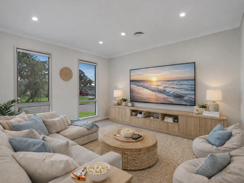 This modern single-level four-bedroom home is designed for comfort and convenience. Featuring a separate lounge room plus a tiled open plan kitchen, dining and family area with split system air conditioning, it’s the perfect blend of style and functionality. The main bedroom offers a walk-in robe and ensuite, while all other bedrooms include built-in wardrobes.