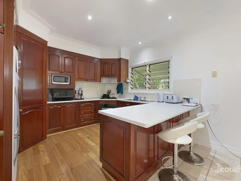 This spacious high-set property has been thoughtfully divided into two separate units, with Unit 1 offering generous living space including two bedrooms plus a dedicated study.