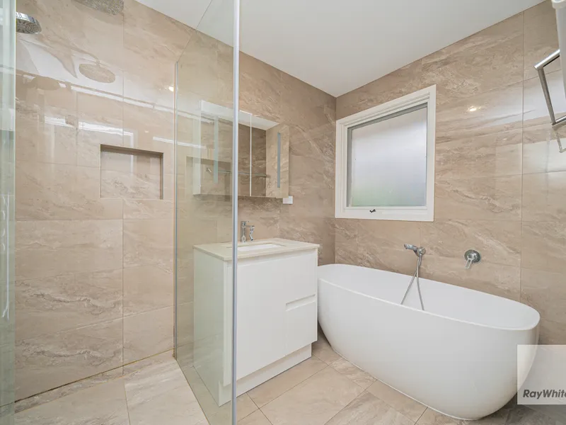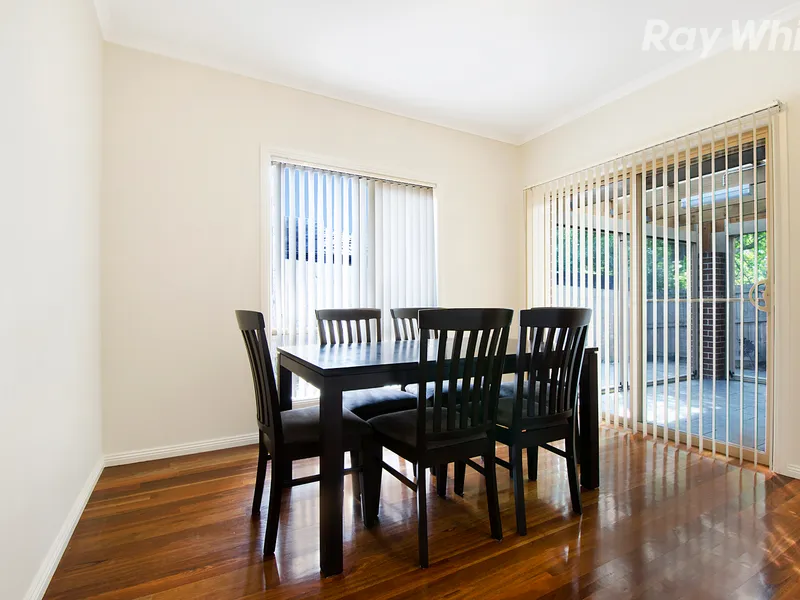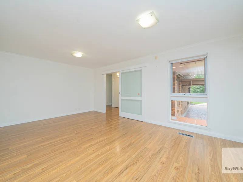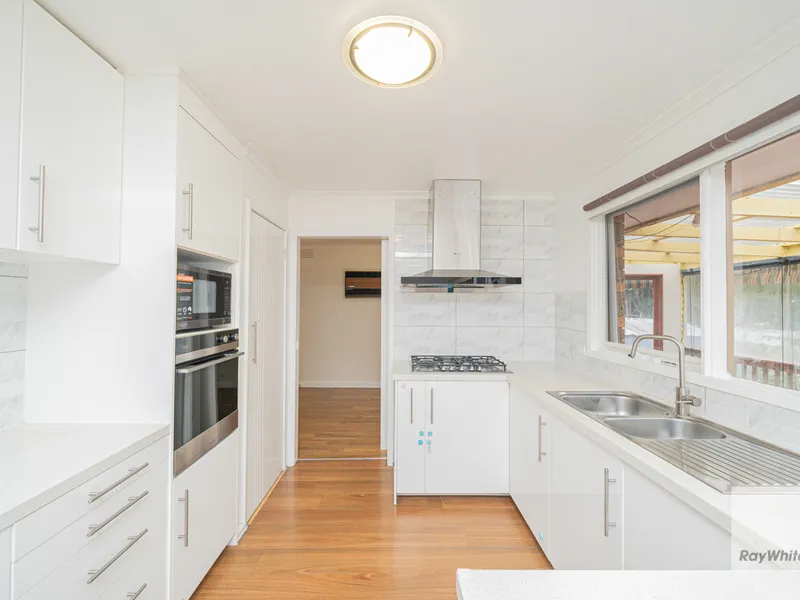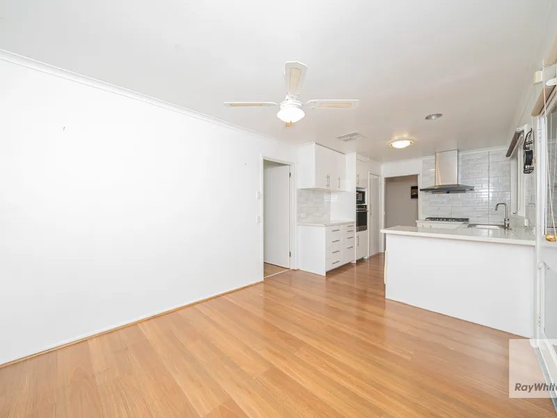 Inviting hues of honey-toned timber floorboards highlight the entry foyer, flowing through to a generous size living and dining room bathed in warm light. Accompanying this is a casual meals area and recent renovated well-presented galley kitchen boasting plenty of preparation space and excellent storage. Creating a seamless indoor-outdoor living environment, the dining room door opens to reveal a full-length covered alfresco deck with chic all-weather café blinds, leading to a paved entertainment area and leafy backyard; providing a safe haven for children and pets to enjoy. Back inside, accommodation comprises a large master bedroom with built-in robes and ensuite, with three additional bedrooms sharing the use of the spotless family bathroom with a separate toilet.