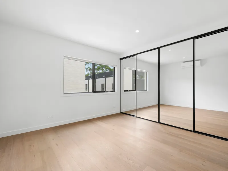 Immaculately presented and thoughtfully designed, this modern two-level townhouse delivers generous family proportions with four bedrooms and three bathrooms. The lower-level hosts three well-sized bedrooms, all with built-in robes, including one with split system and another with a sleek ensuite, while wall heaters provide added comfort. Upstairs, open-plan living and dining flows seamlessly to a private balcony via double sliding doors, creating an inviting indoor-outdoor connection. The stone kitchen is appointed with a Smeg oven, induction cooktop and dishwasher, offering both style and functionality.