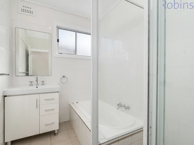 - Two spacious living spaces; one at front and one air-conditioned at rear of home - Updated bathroom with separate shower recess and bathtub