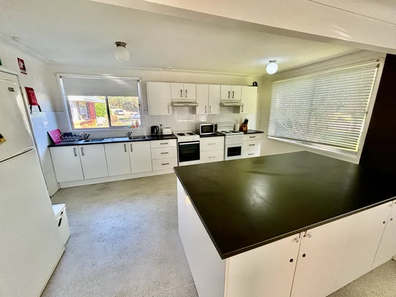 - Double open plan kitchen overlooking the dining area with split system air con