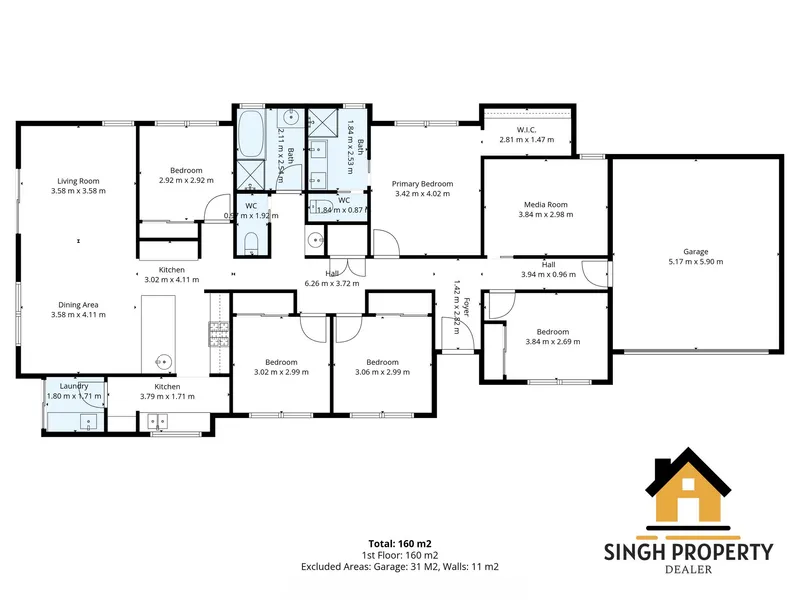 - Study/media room, easily converted to a 5th bedroom