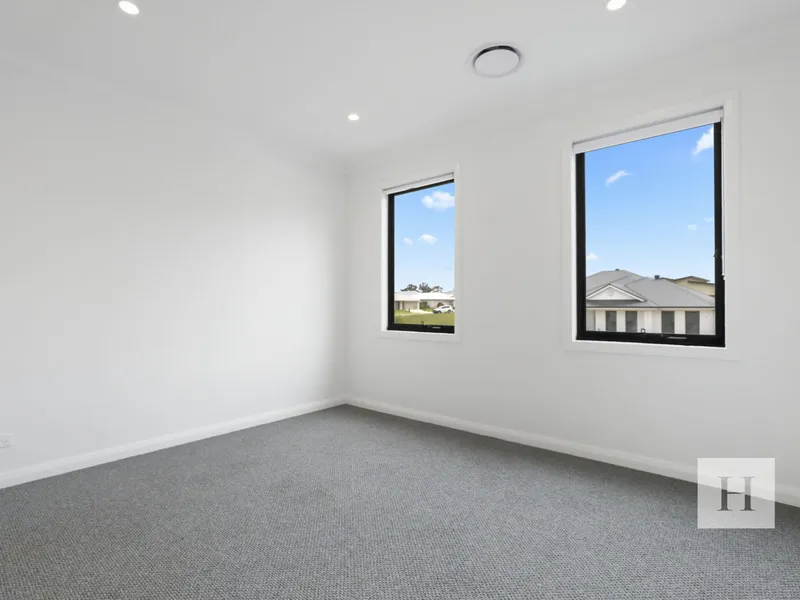 Upstairs, the master suite offers a private retreat with an ensuite and walk-in wardrobe, while all other bedrooms are fitted with built-in wardrobes. The main bathroom includes a freestanding bath, perfect for relaxing after a long day. Ducted air conditioning throughout ensures year-round comfort, while the remote-controlled single garage with internal access adds convenience.