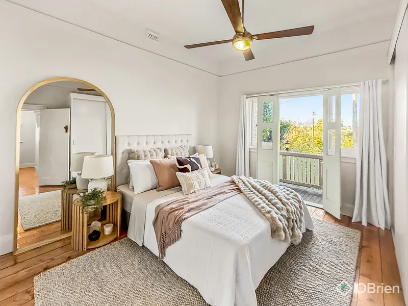 - Main bedroom with built in robes, ceiling fan and french doors that open to balcony